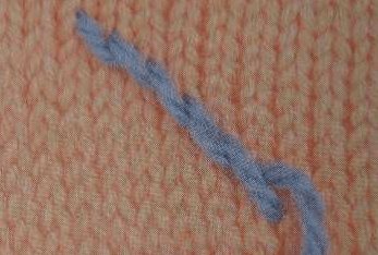 - Второй небольшой стежок назад иголку, вывести нить на лицевую сторону.