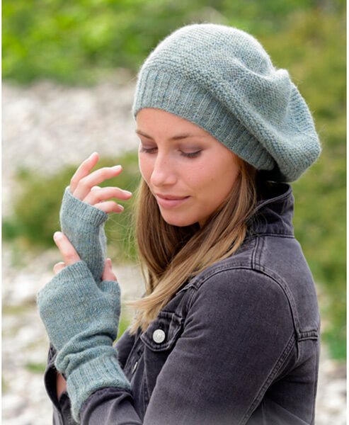 - Мохер — пушистое, тонкое сырье. Из-за высокой стоимости дополняется другой пряжей. Вязаные береты из этого материала получаются очень теплыми.